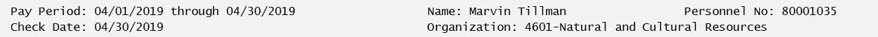 Pay Period – The beginning and ending payroll period dates. This corresponds to base pay or salary but may not be the same as the overtime period. Overtime periods, particularly with law enforcement and other 28-day employees, are determined by individual agencies for specific groups of employees. Employees should check with their agency regarding the overtime period being paid in a particular payroll. The overtime period dates are not shown on the statement due to the wide variety within the state agencies.