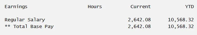 Earnings – The type of earnings associated with the amount paid (regular salary, leave, etc.)