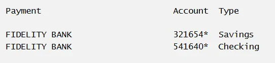 The financial institutional to which the direct deposit was sent, the account number, the account type and the amount deposited.