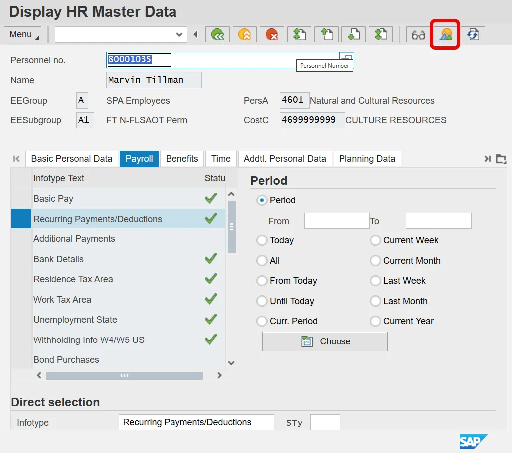 Step 6.    Click to the left of the Recurring Payments/Deductions infotype.
