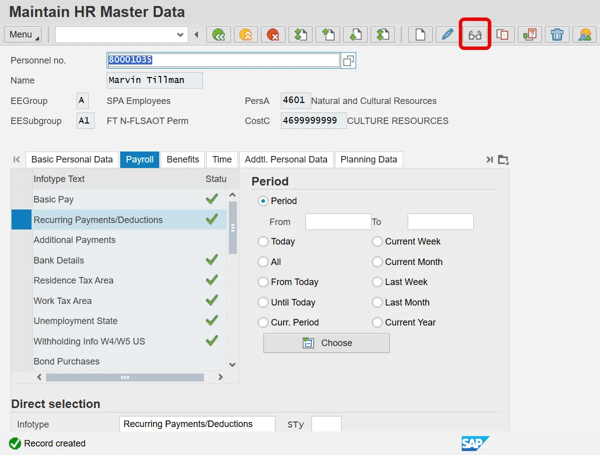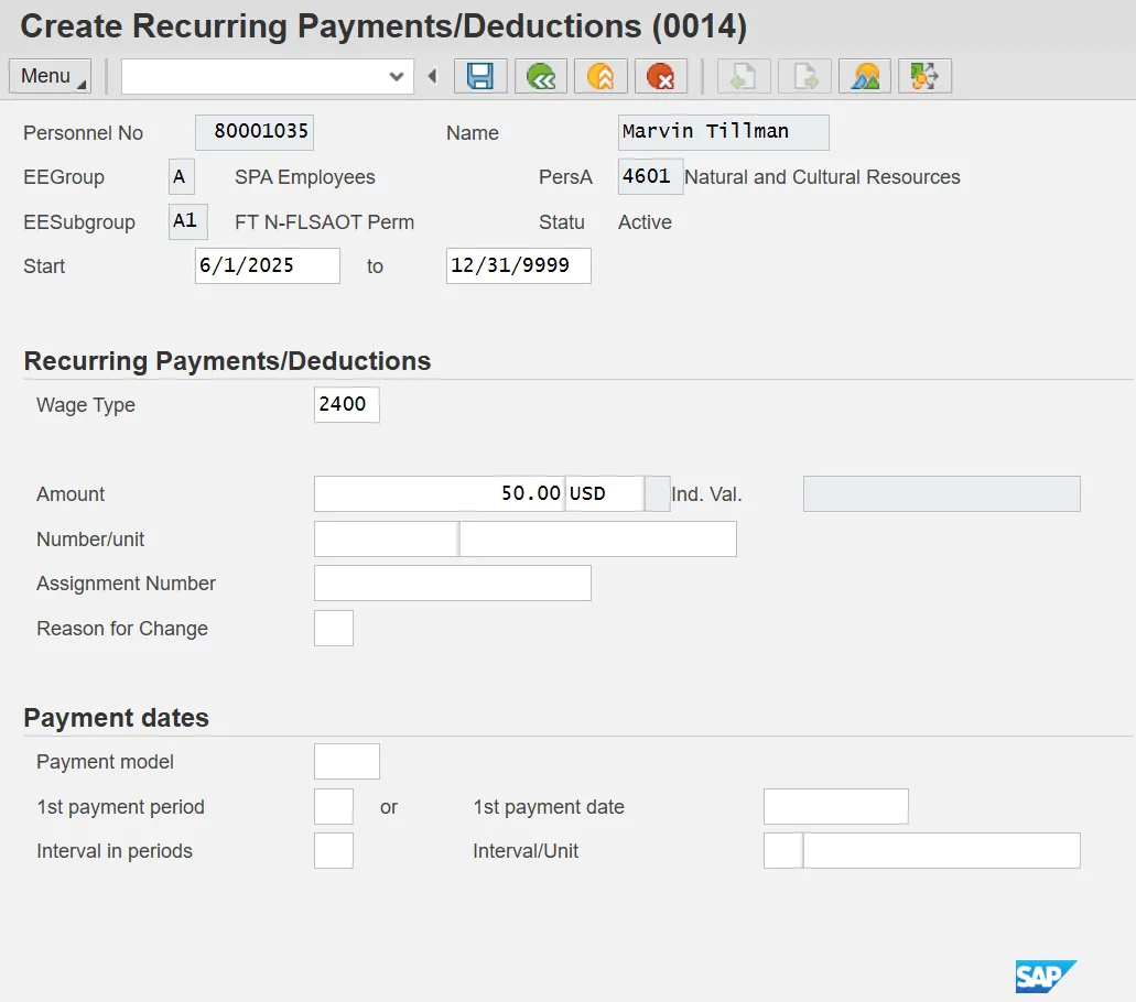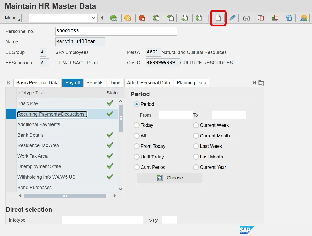 Step 6. Select the Recurring Payments/Deductions infotype.