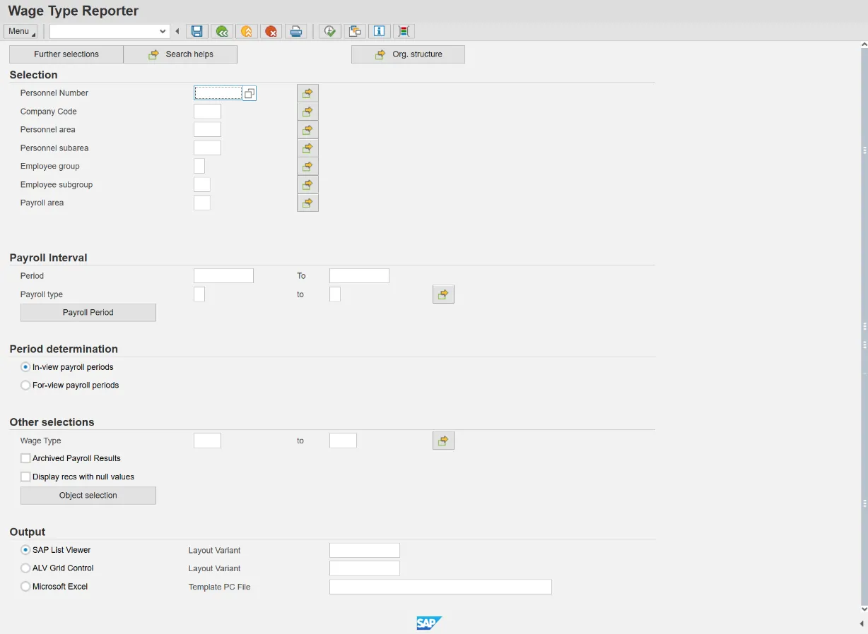 The purpose of this transaction is to evaluate the wage types for a specific period and a specific payroll run. A regular payroll run can be compared with another regular payroll run using wage type reporter.