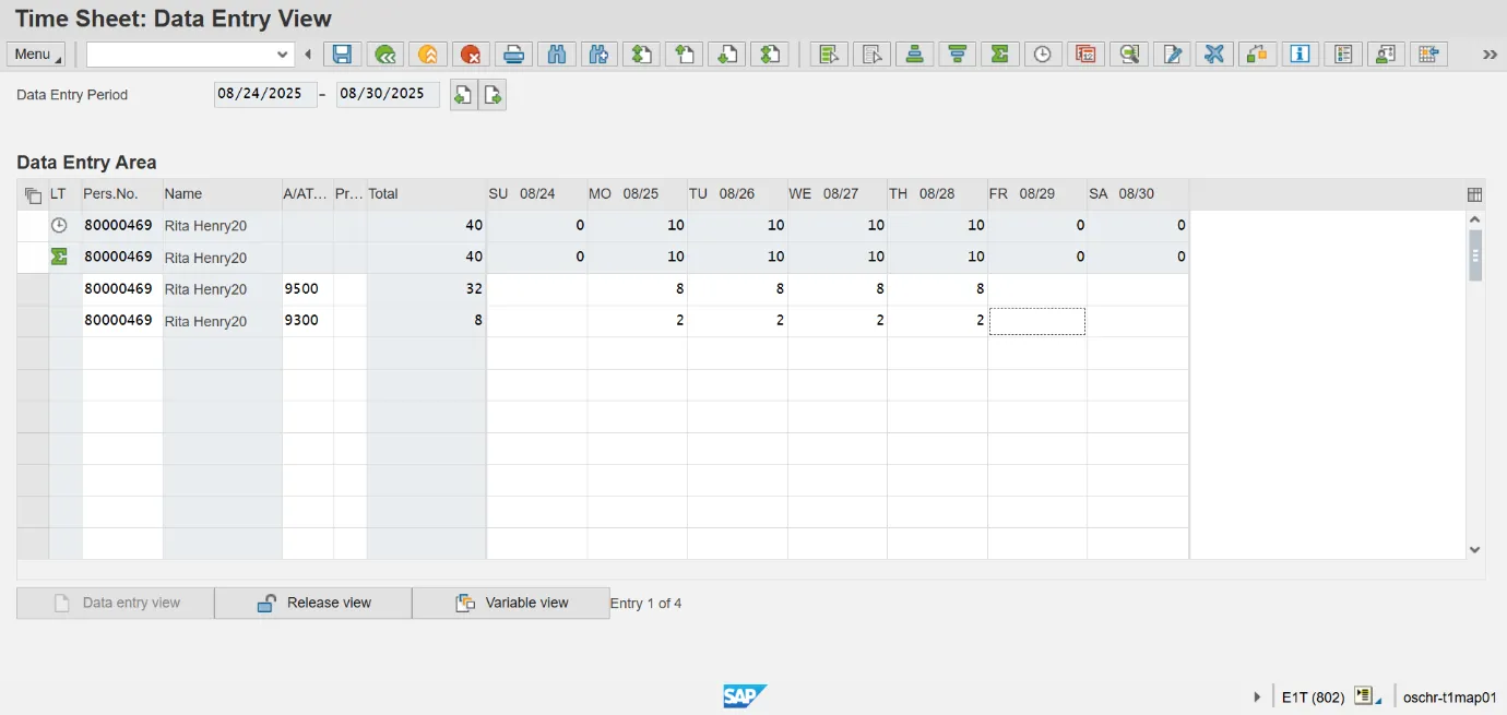 - Record Holiday Leave (9300) on some other scheduled work day