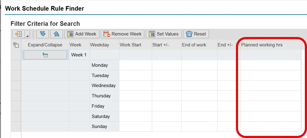 Step 4. Search by applying the designated hours on the expected day in the Planned working hrs column.