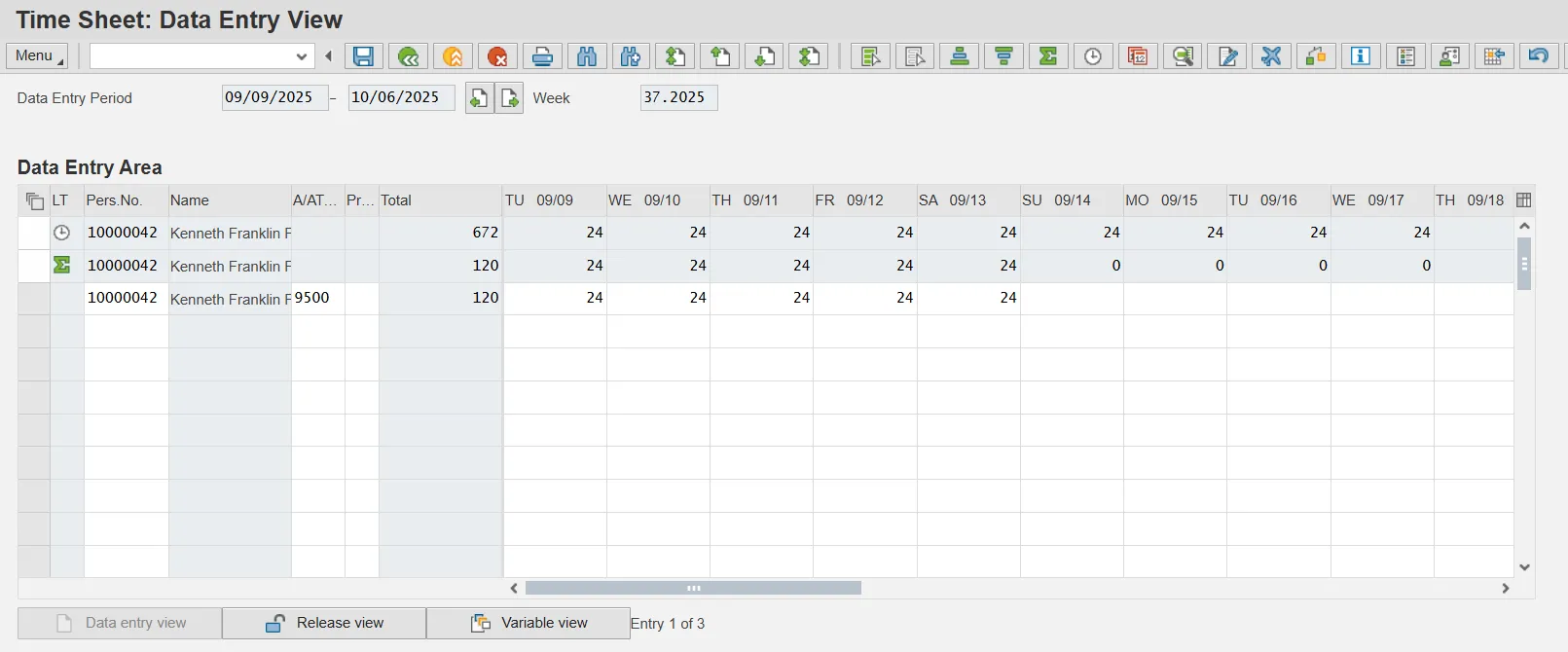 The 28-Day data entry profile is available on the CAT2 Time Sheet: Initial Screen or CAT3: Display transaction.