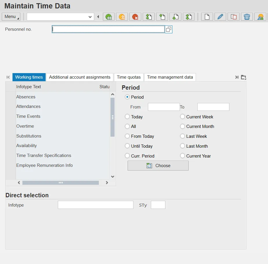 If the personnel number is not known, use the match code to search for the personnel number for which the current employee will be substituting.