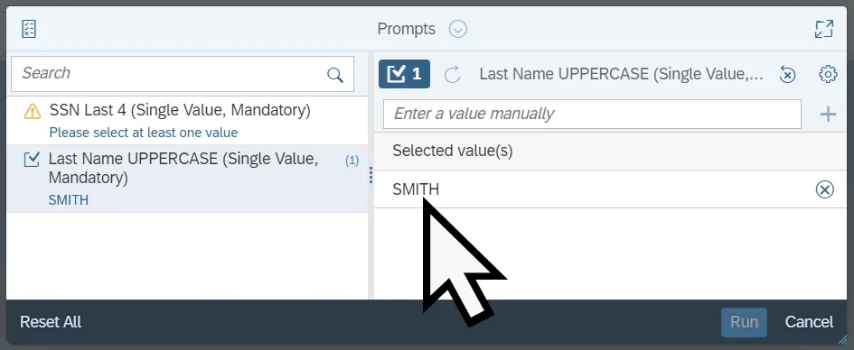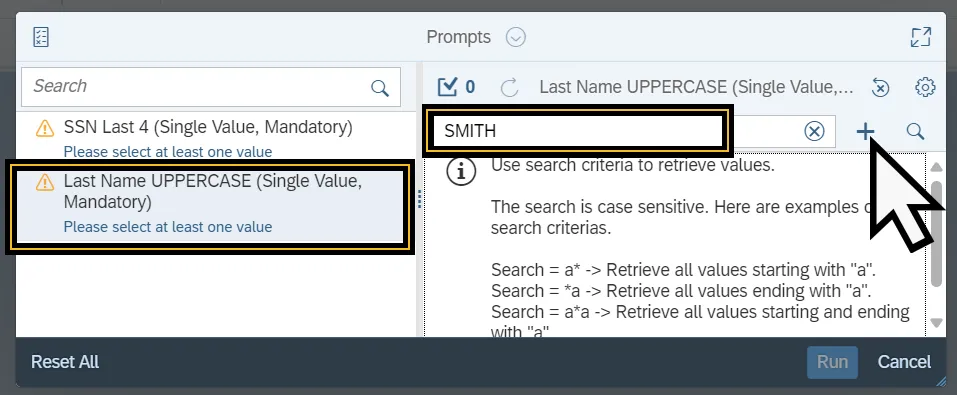 Step 1. Select the Last Name UPPERCASE (Single Value) Prompt.