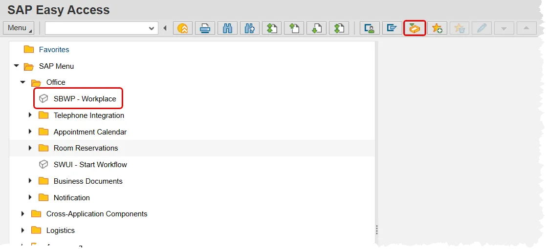 - Use the SAP Menu path SAP menu Office SBWP – Workplace; or