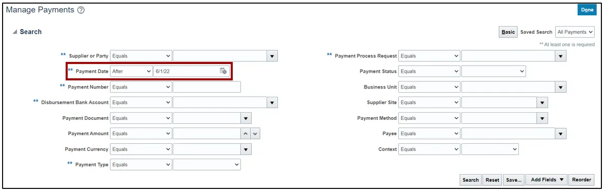 In this example, we choose Payment Date After 6/1/22.