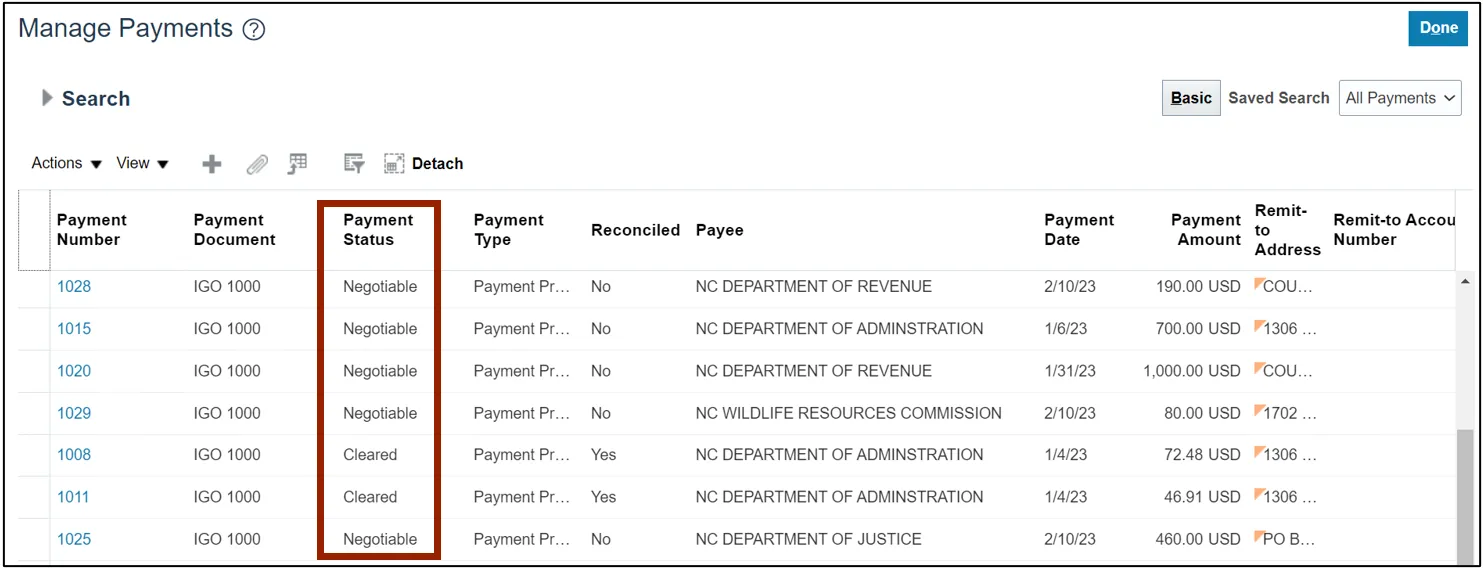 - If the Payment Status is Negotiable, it means that the payment has been created and is yet to be cleared.