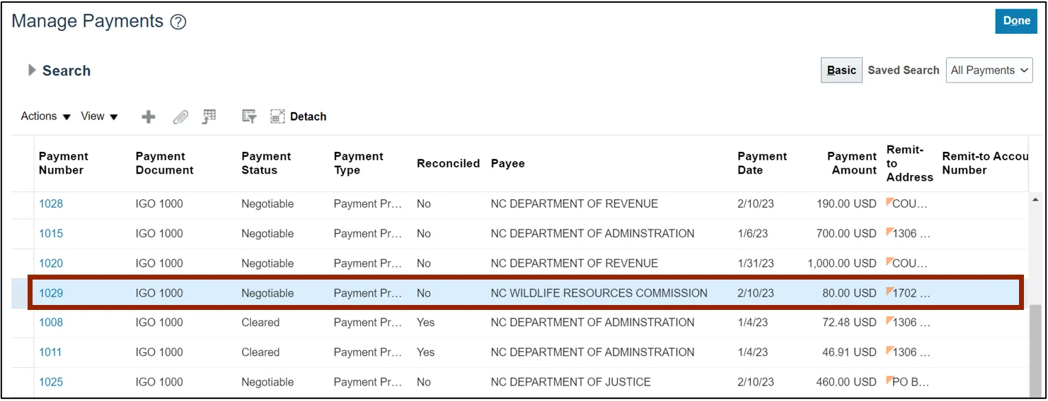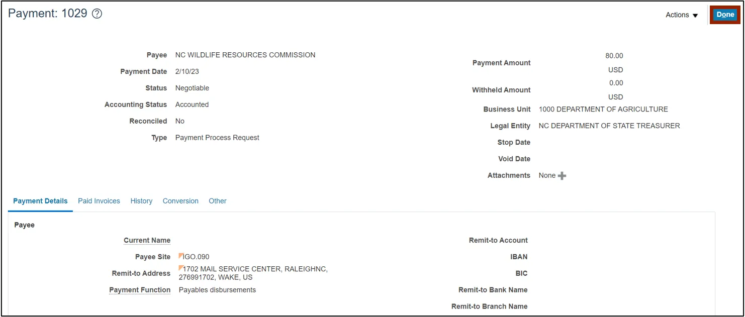 Step 10. Click the Done button to go back to the Manage Payments page.