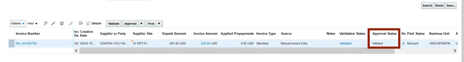 Step 6. The selected Invoice number’s Approval Status will change to Initiated.