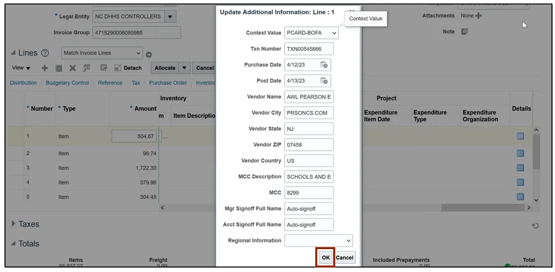 Step 10.    The Update Additional Information pop-up appears. Validate and click the OK button.