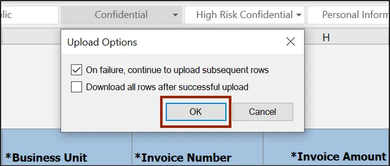 Step 12.    The Upload Options pop-up appears. Click the OK button.