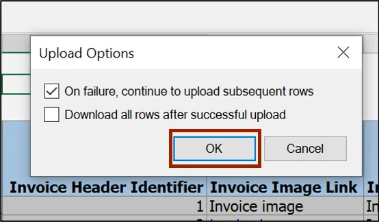Step 11. The Upload Options pop-up appears. Click the OK button.
