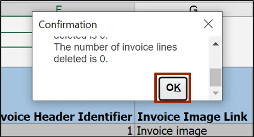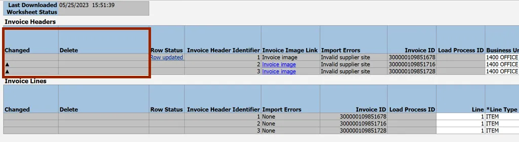 Note: Use Invoice ID as reference to map the Import Errors in Invoice Headers and Invoice Lines sections, also you can delete the row by clicking on the Delete (column D) and start over.