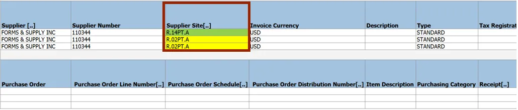 Step 8. Scroll to right and fix the import errors in Supplier Site field.