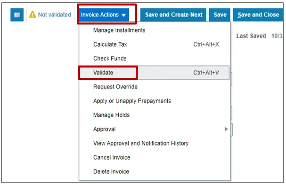 Step 13. Validate the Invoice. The status will be Validated.