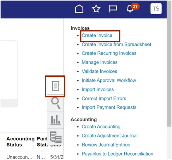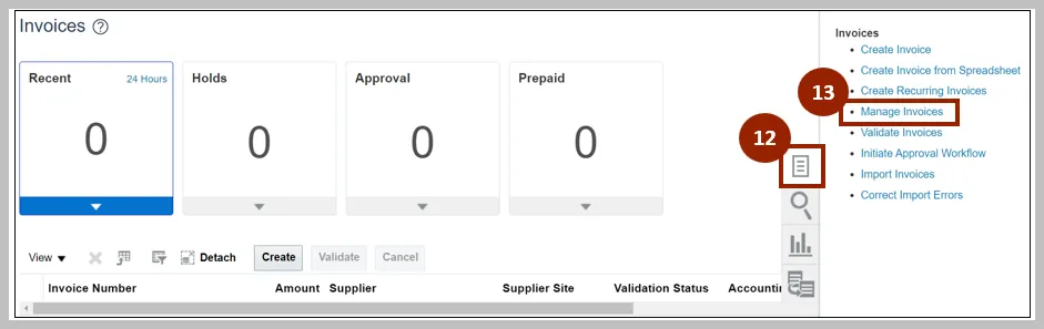 Navigate to the Invoices dashboard. (Home page > Payables tab > Invoice app):