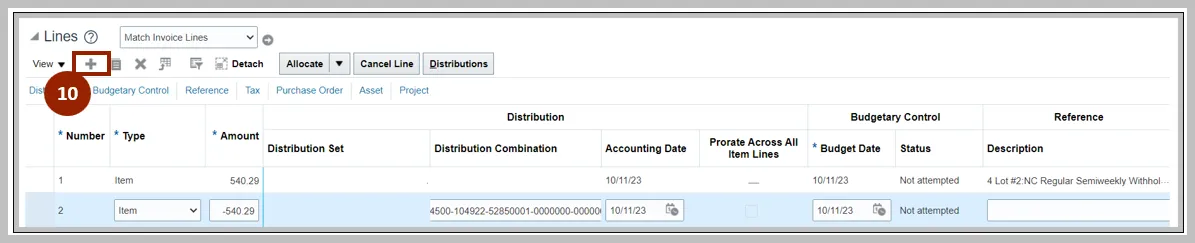 Step 10. Click the Add icon to add a new line.