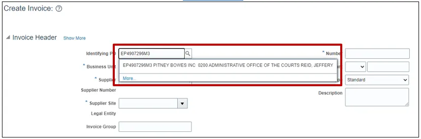 In this example, the Invoice Number has been entered.