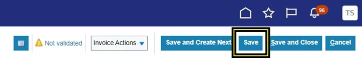 Step 17.    Use steps 15 through 19 in scenario 1 to Validate and Approve the zero-dollar invoice.