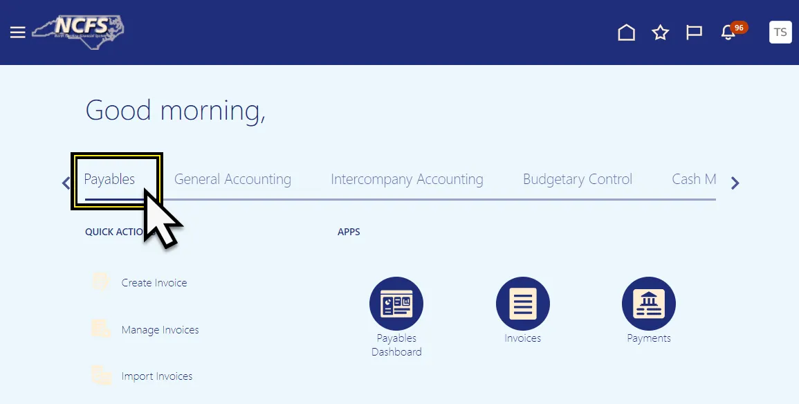 Step 2. Navigate to the Payables tab from the home page.