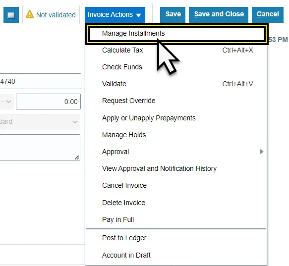 16. Click the Invoice Actions drop-down menu.