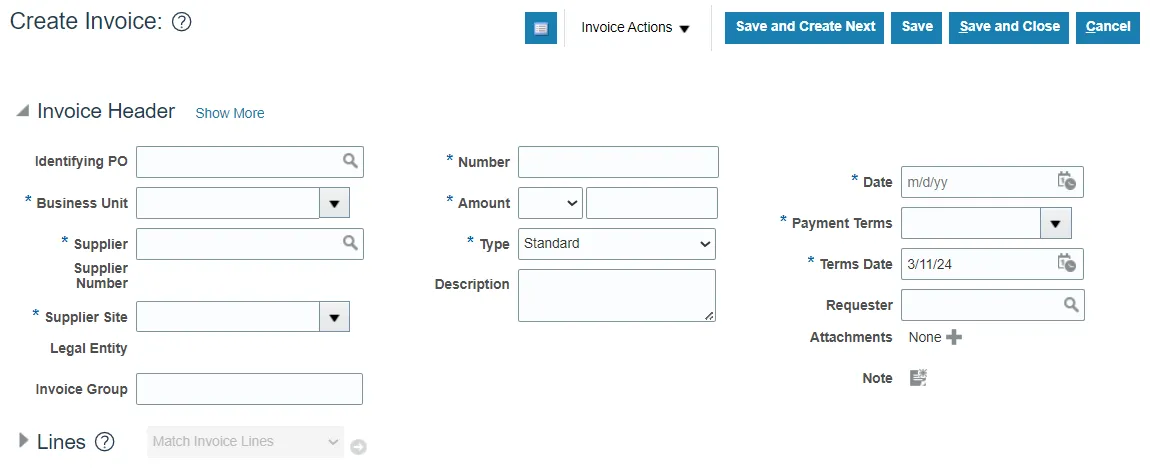 Step 5. The Create Invoice page is displayed.