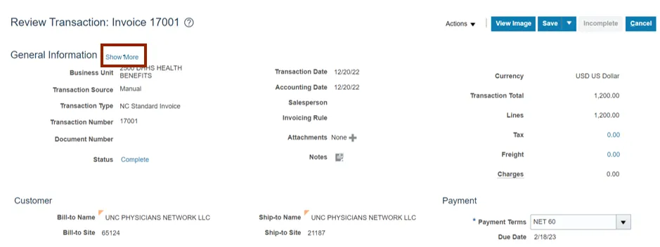 Step 6. The Review Transaction page is displayed. Click Show More.
