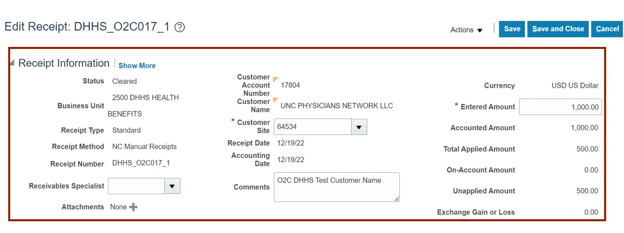 Step 7. On the Edit Receipt page, review the Receipt Information section.