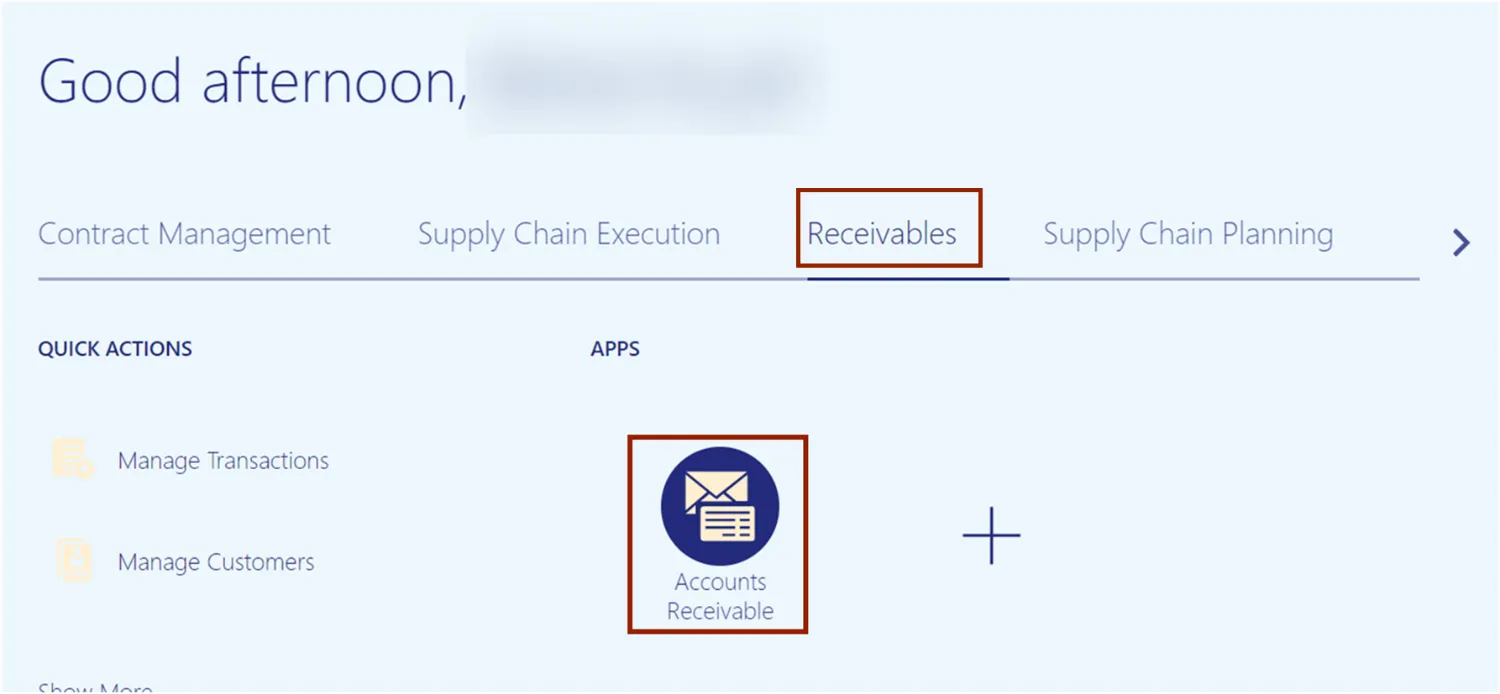 Step 2. On the Home page, click the Receivables tab and then click the Accounts Receivables app.