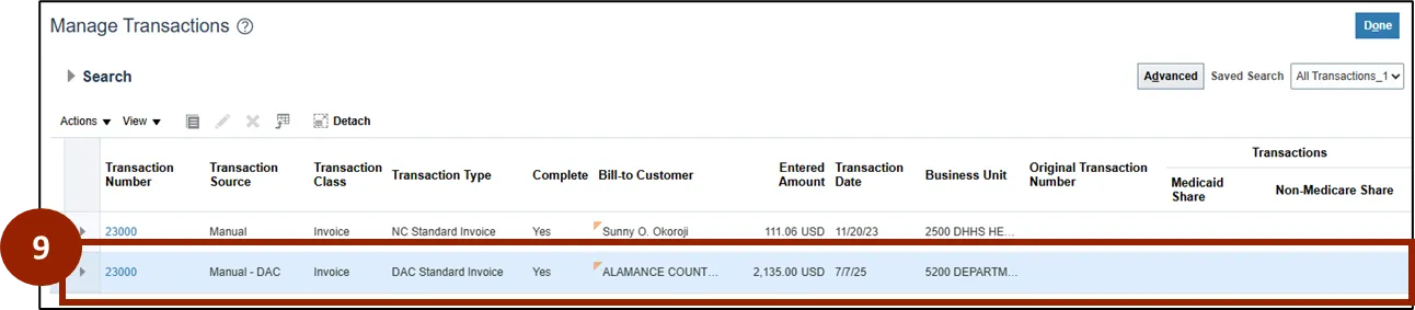 Step 8.    Enter the Transaction Number and click Search.