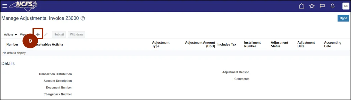 NCFS users can reference the Manage and Approve Receivables Adjustments using the steps above.