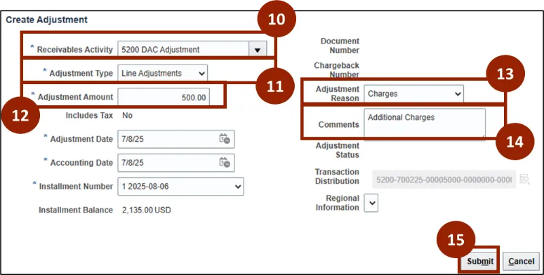 All adjustments undergo a mandatory approval process to maintain control and accuracy. Once an adjustment is created, it is automatically routed to the designated approver for review. The invoice will only be updated to reflect the adjustment after it has been formally approved.