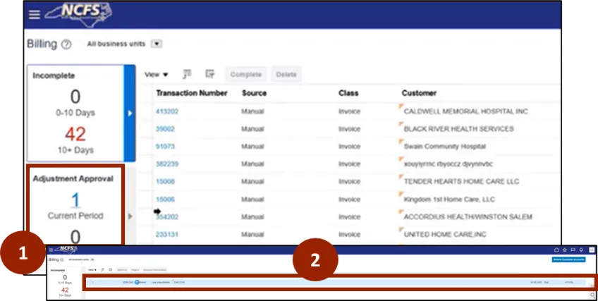Step 1.    Once On the Billing page, click the Adjustment Approval info tile.