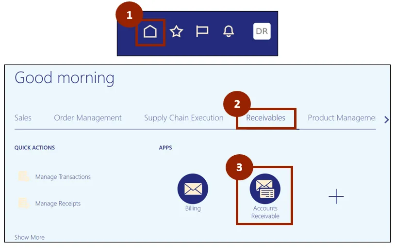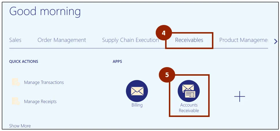 Step 2. On the Home page, select Receivables.
