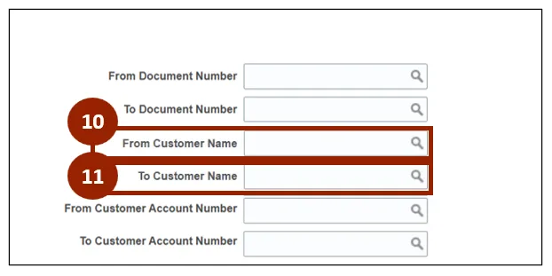 Step 10. In the From Customer Name search field, enter or select the starting customer name for the range you wish to select.