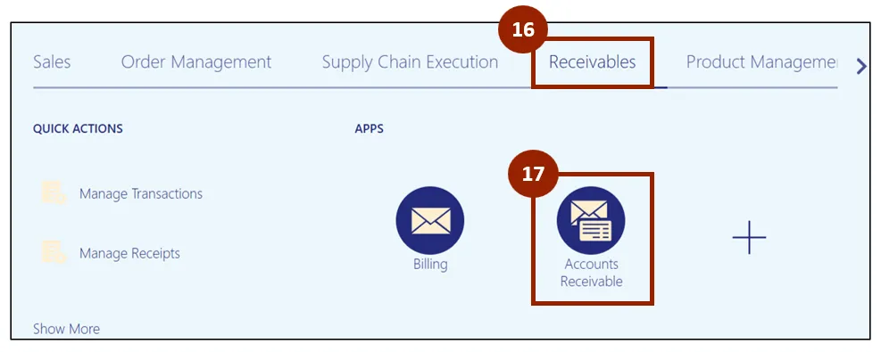 Step 16. On the Home page, click the Receivables tab.