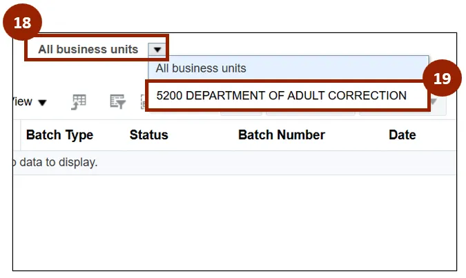Step 6. On the Create Automatic Receipt Batch screen, within the Business Unit drop-down field, select 5200 Department of Adult Correction.