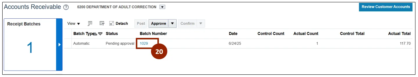 Approve the Automatic Receipt Batch