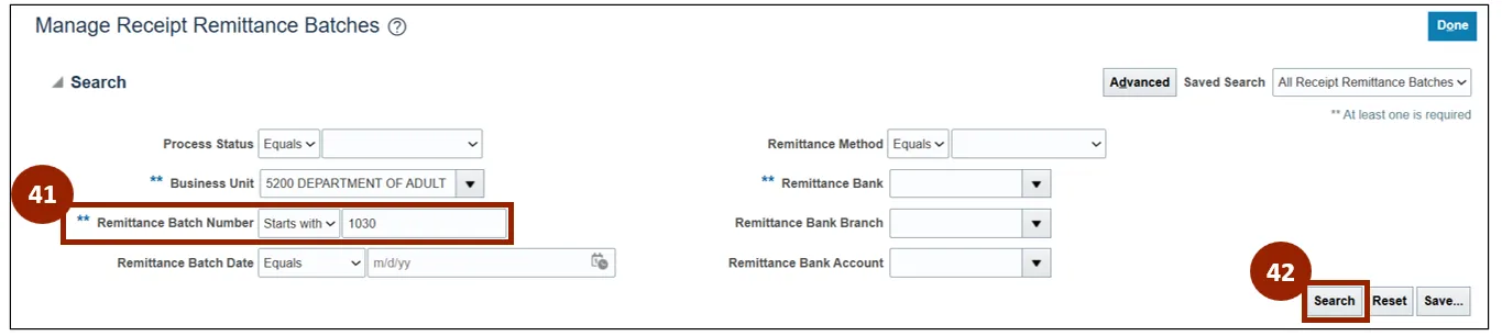 Step 41. Within the Remittance Batch Number field, enter the associated batch number.