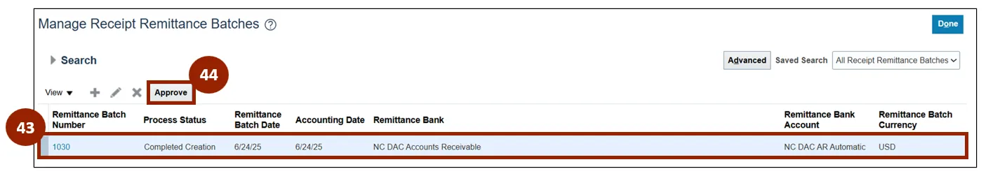 Approve Receipt Remittance Batch
