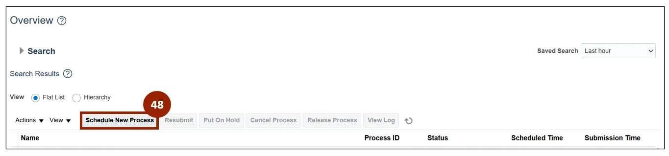 Step 48. Within the Overview screen, click the Schedule New Process button.