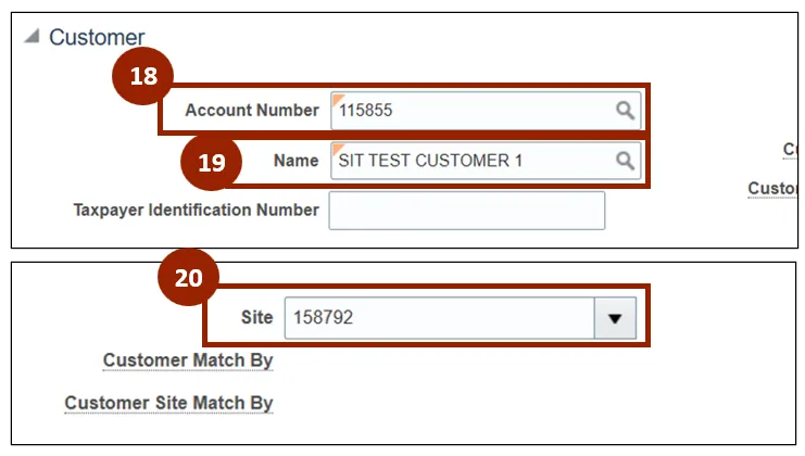 Step 18. Within the Customer section on the Account Number field, enter the appropriate Account Number.