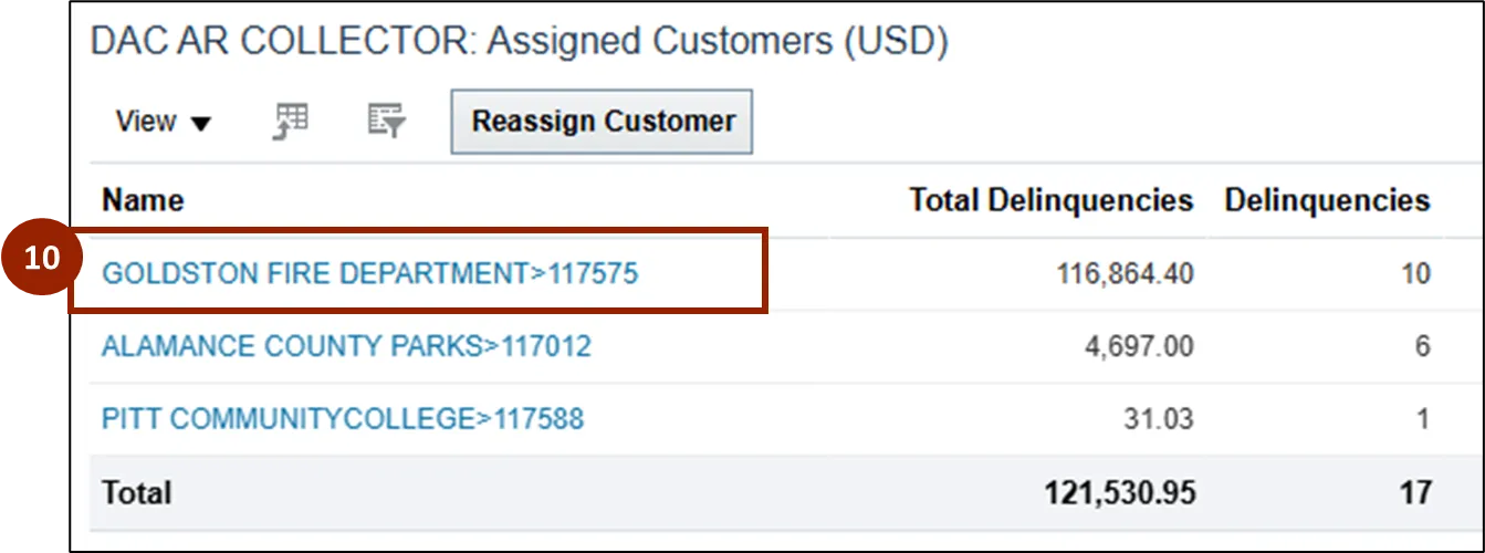 Step 10. To navigate to the Customer page within the Collections Manager, click on the Customer Name.