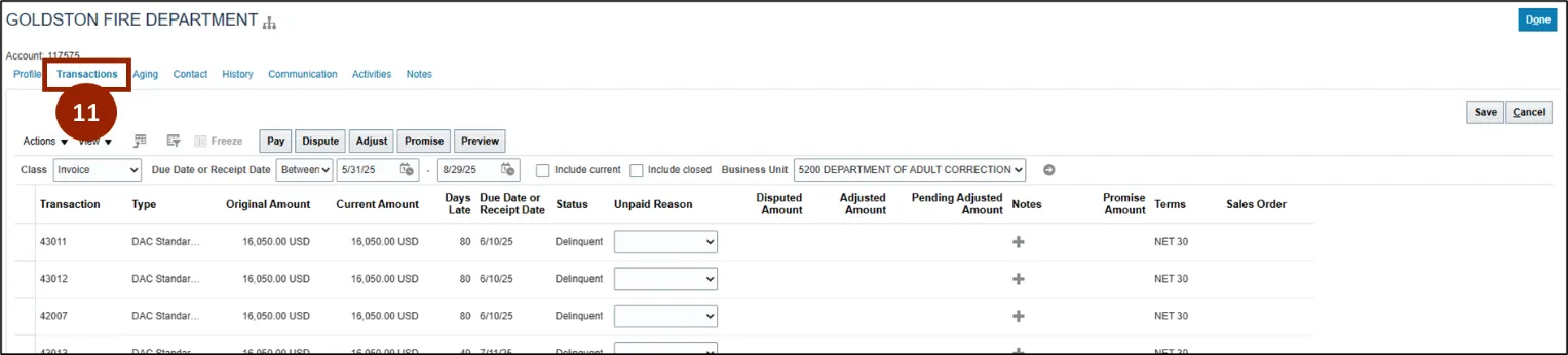 To view dunning history in NCFS, please follow the steps below. There are 17 steps to complete this process.
