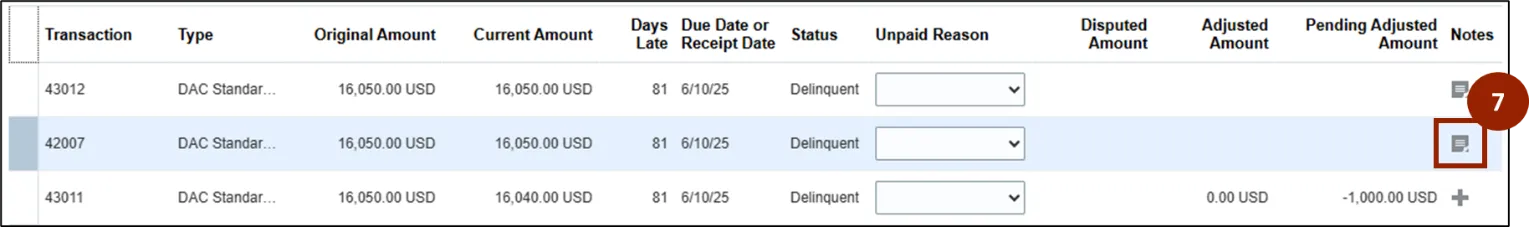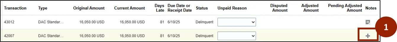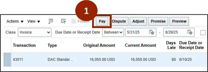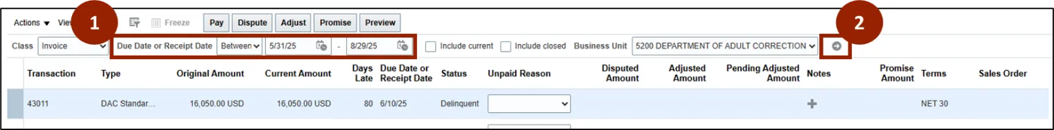 Step 2.    Click the gray arrow to highlight all transactions currently due or delinquent.