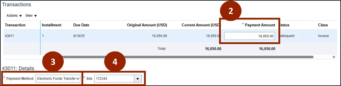 Step 2.    Input the payment amount in the Payment Amount field.