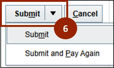 Step 6.    Click Submit or, to make another payment, select Submit and Pay Again from the Submit drop-down.